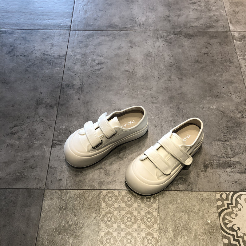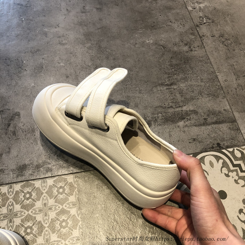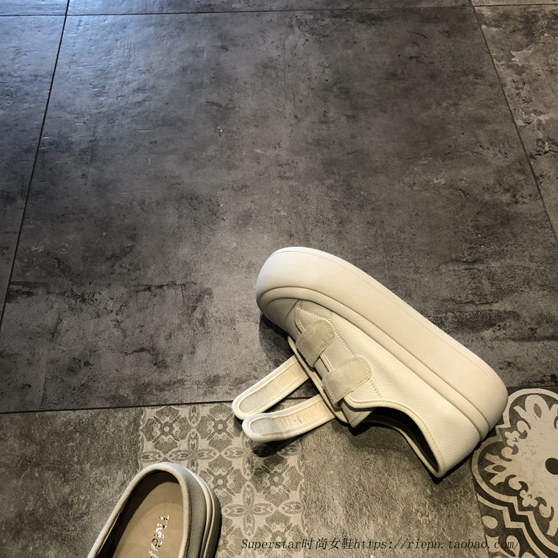 女春秋新款 懒人小白鞋 韩版 真皮魔术贴松糕轻便休闲鞋 子 时尚 厚底鞋