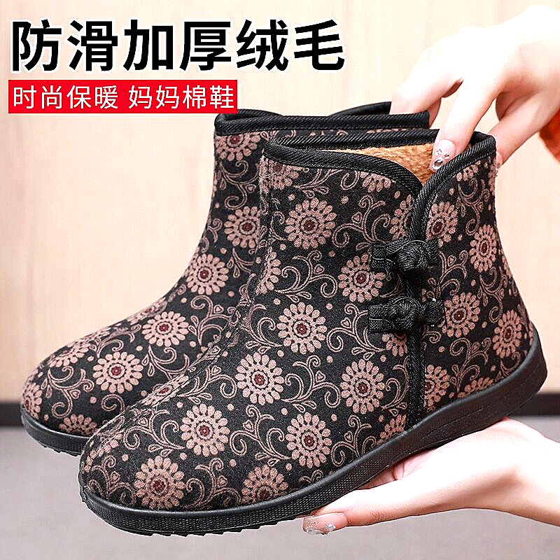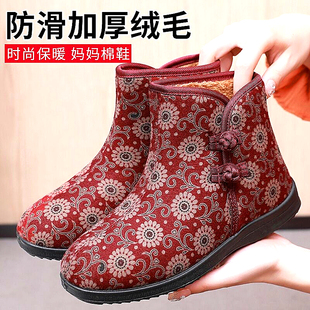 加绒防滑一脚蹬保暖妈妈棉靴加厚雪地靴 女冬季 2024新款 老北京棉鞋