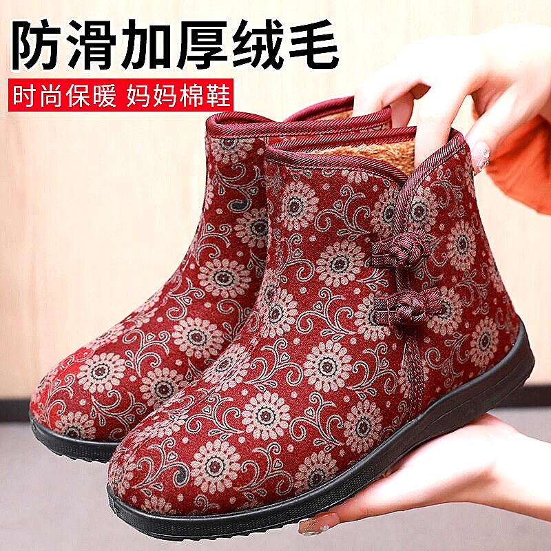 加绒时尚 2024冬季 女加厚防滑一脚蹬妈妈棉鞋 老北京棉鞋 雪地靴 新款