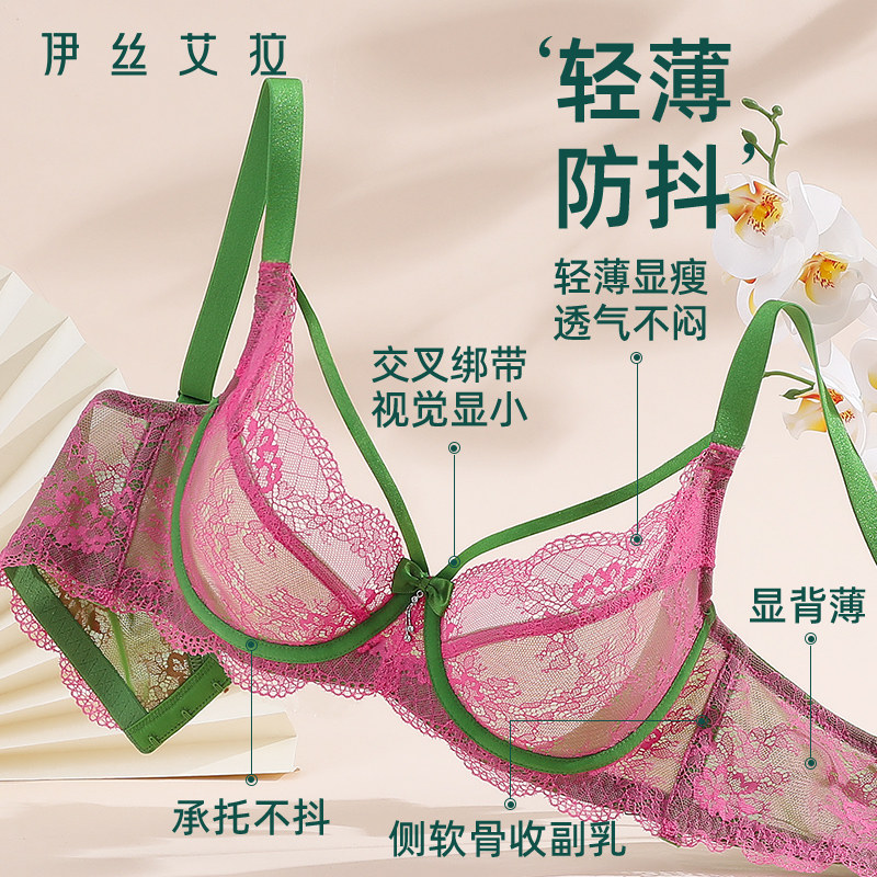 伊丝艾拉性感内衣女夏薄款 透气大胸显小胸聚拢防下垂蕾丝文胸套装