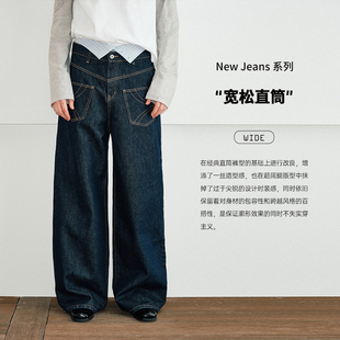 男秋冬高级感cleanfit宽松直筒阔腿裤 V37美式 复古水洗做旧牛仔裤