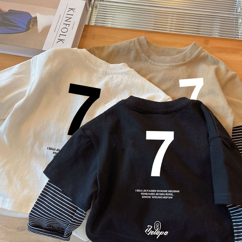 假两件条纹长袖 宝宝打底衫 T恤 男童女童早春秋装 儿童纯棉2026新款