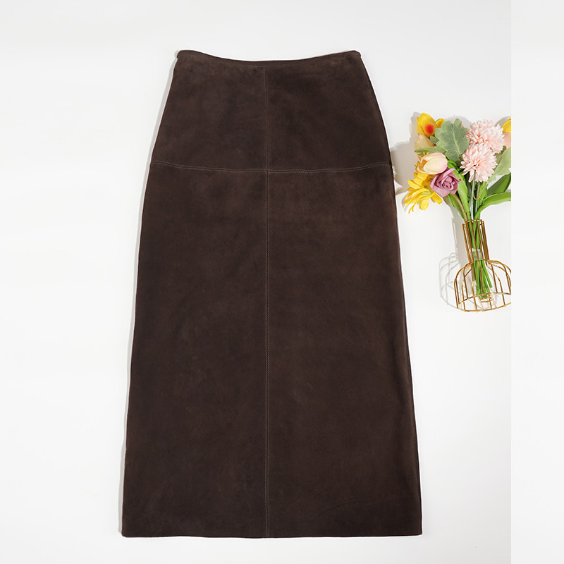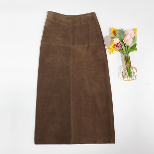 进口山羊皮反绒面真皮半身裙女高腰开叉2026春秋新款 复古包臀长裙
