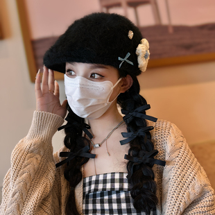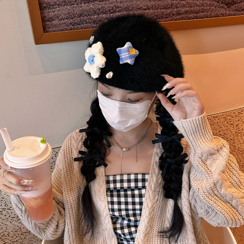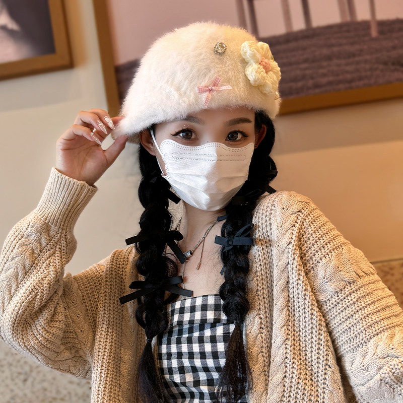 婴儿帽子秋冬季 宝宝女婴幼儿洋气公主帽小月龄加厚保暖毛线帽冬天
