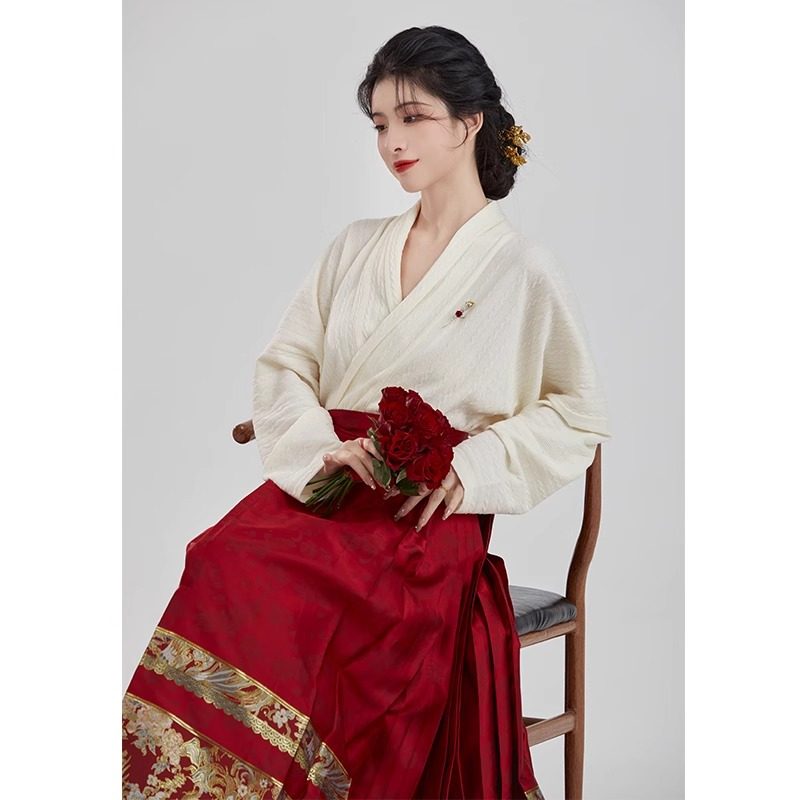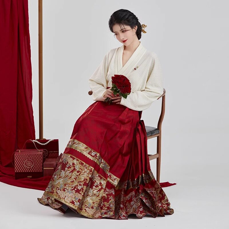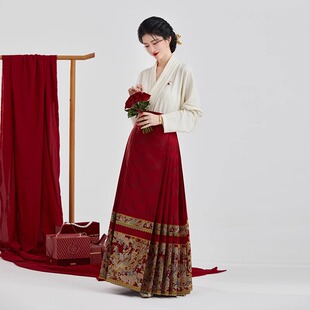 织造司原创明制汉服缔结飞机袖 红色马面裙女订婚礼服敬酒服结婚服