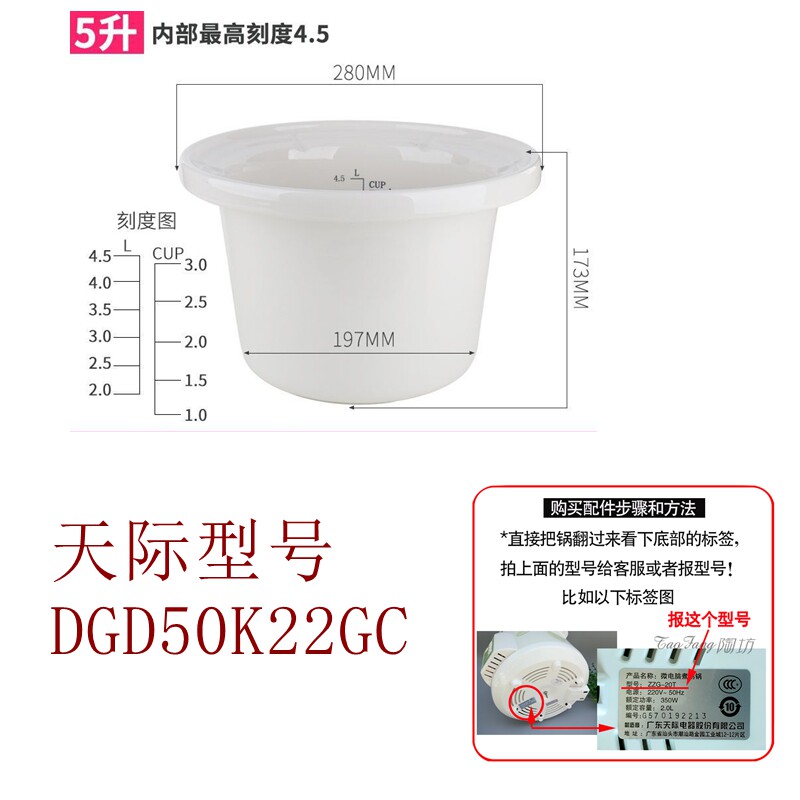 天际微电脑电炖锅DGD30K22GC DGD50K22GC陶瓷内胆配件 DGD40K22GC