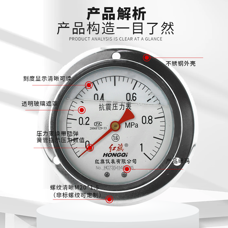 红旗牌仪表 2.5级 压力表 地暖消防胎压气压水压表 厂家直销