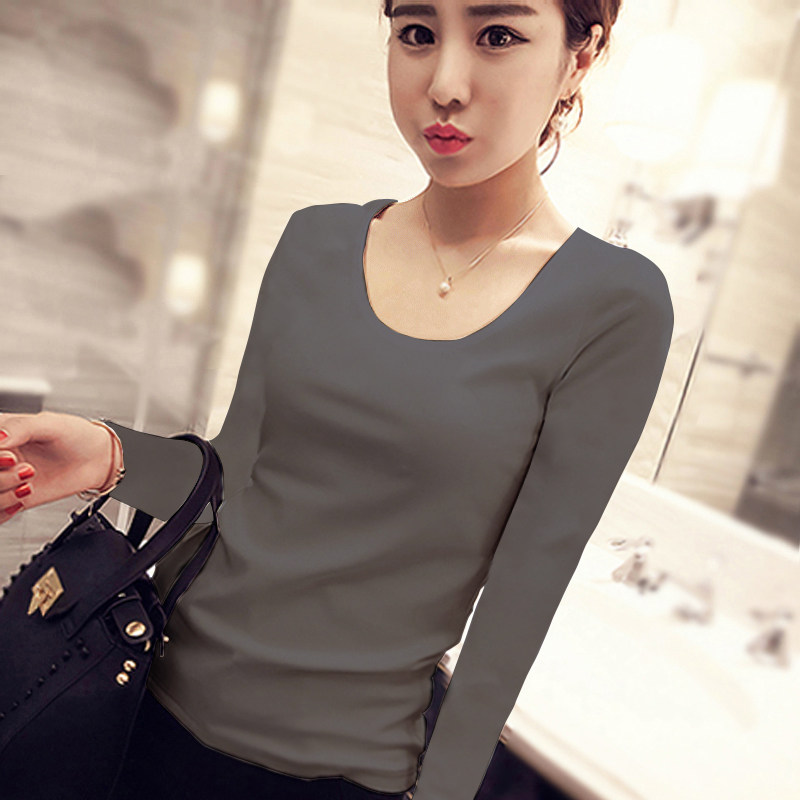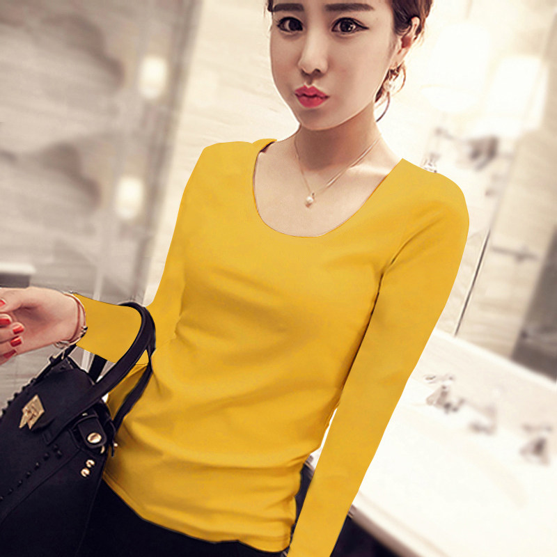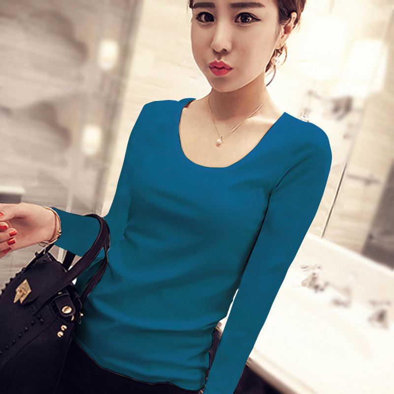 长袖 女春秋季 t恤小个子紧身上衣 圆领打底衫 春天绿色纯棉内搭修身