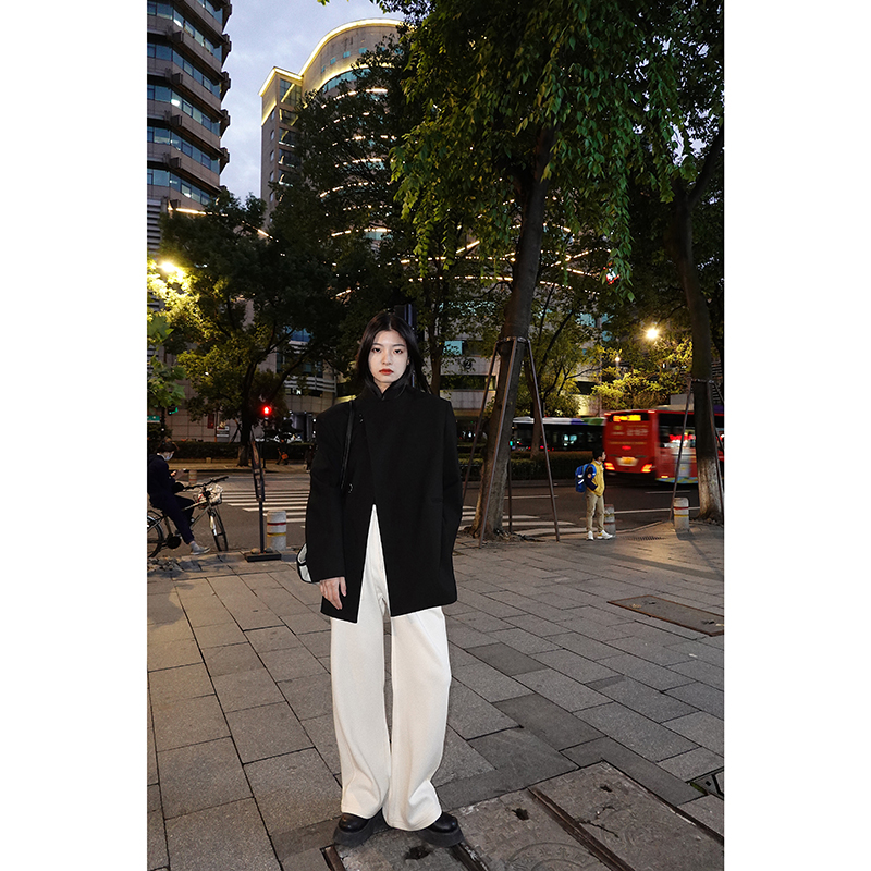 西装 微胖mm秋冬宽松正肩长短款 毛呢大衣外套 百分百女装 DM100大码
