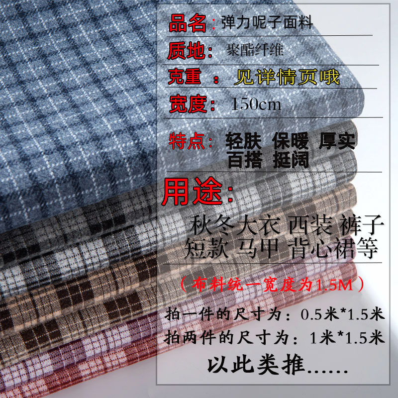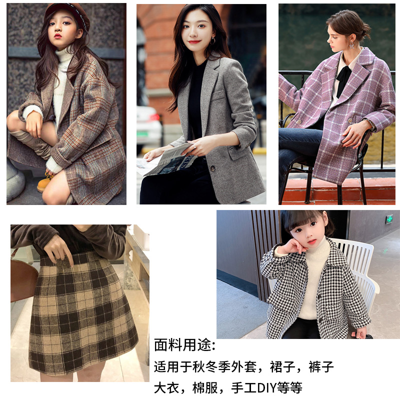 格子毛呢布料秋冬服装 裙子面料仿羊毛呢子布头 加厚大衣外套风衣裤