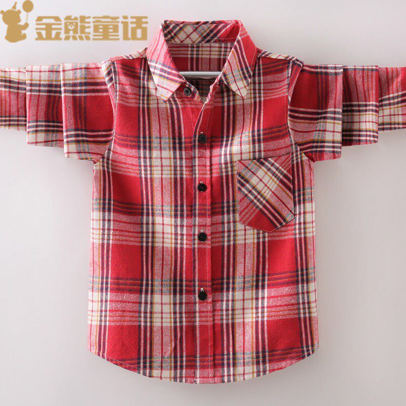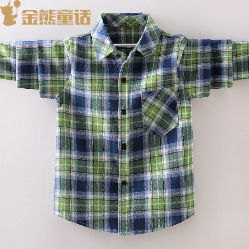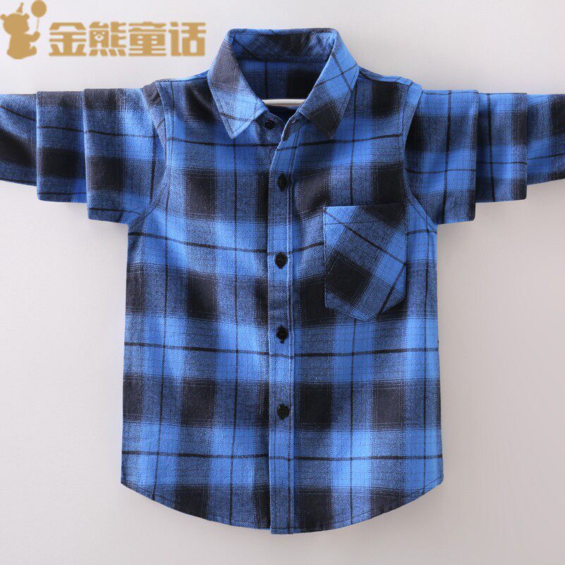 2021秋季 童装 衬衫 格子长袖 纯棉磨毛衬衣帅气打底上衣外套 男童新款