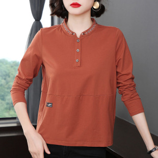 休闲秋衣中老年妈妈上衣打底衫 纯棉长袖 新款 宽松2026春秋装 t恤女