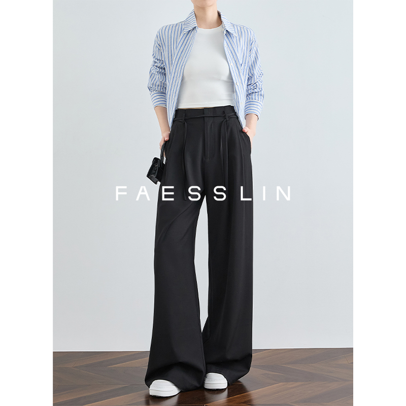 时髦出圈 加长休闲阔腿拖地裤 黑色百搭西装 女春秋款 裤 FAESSLIN