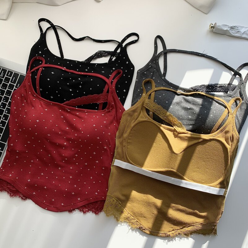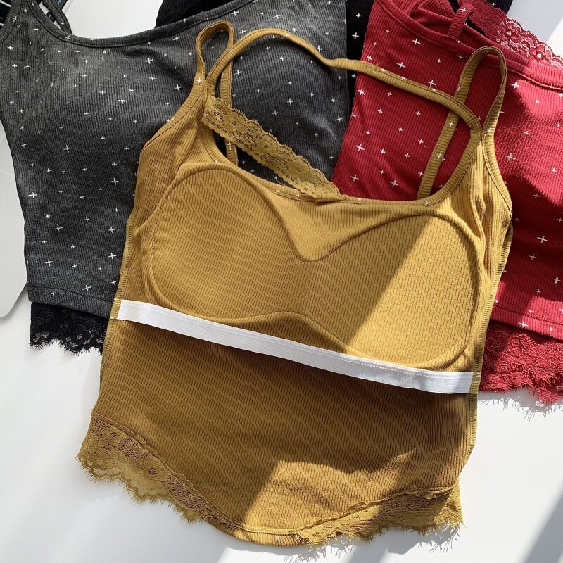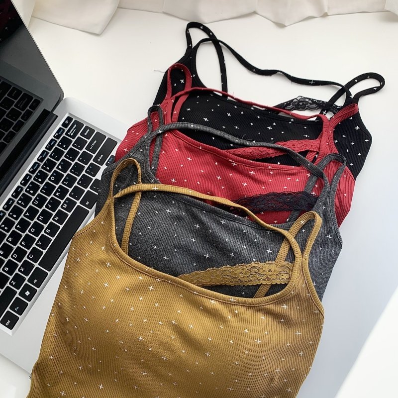 辣妹蕾丝拼接挂脖背心吊带上衣女设计感修身 百搭背心 显瘦减龄短款