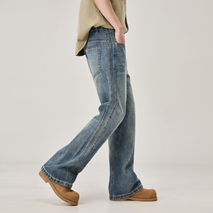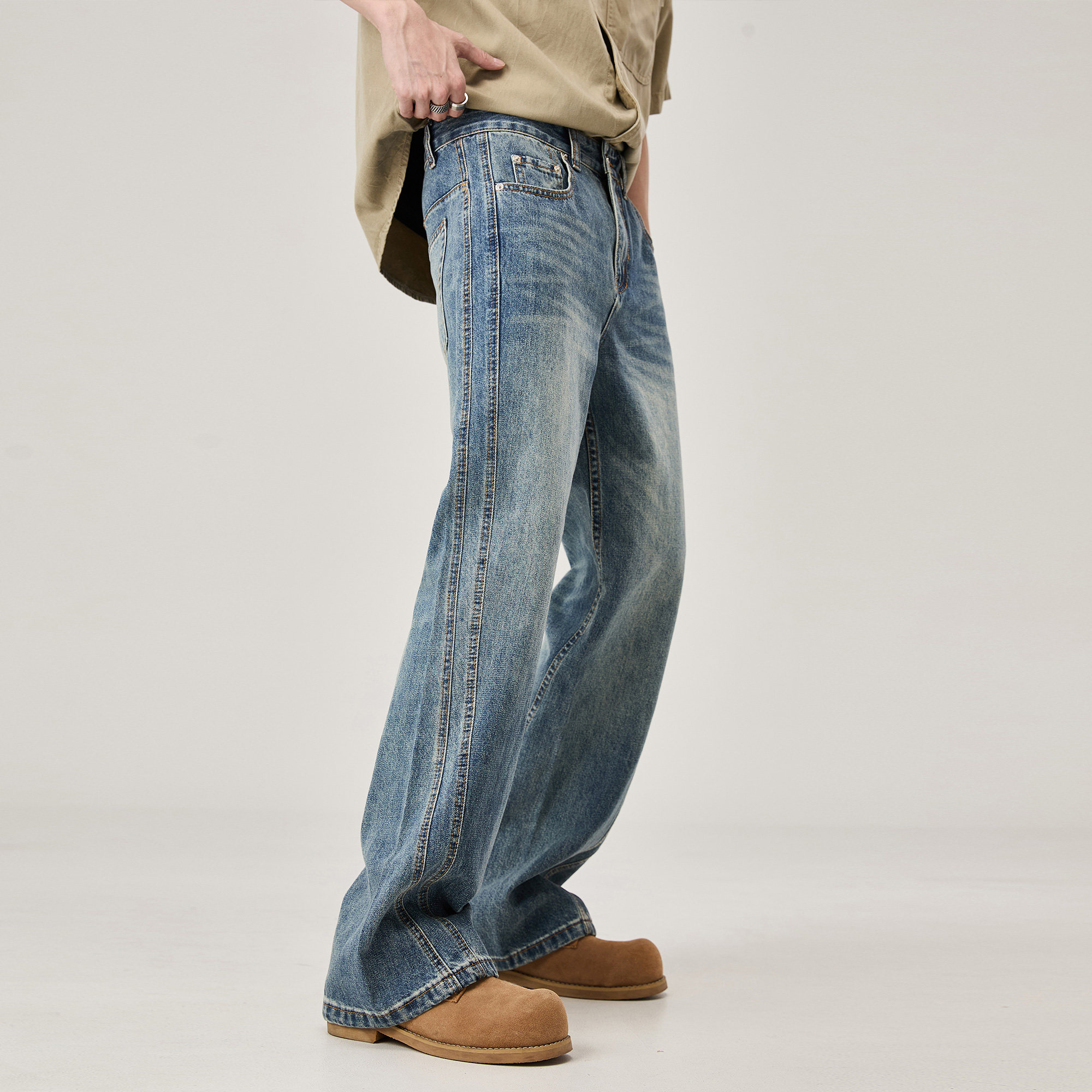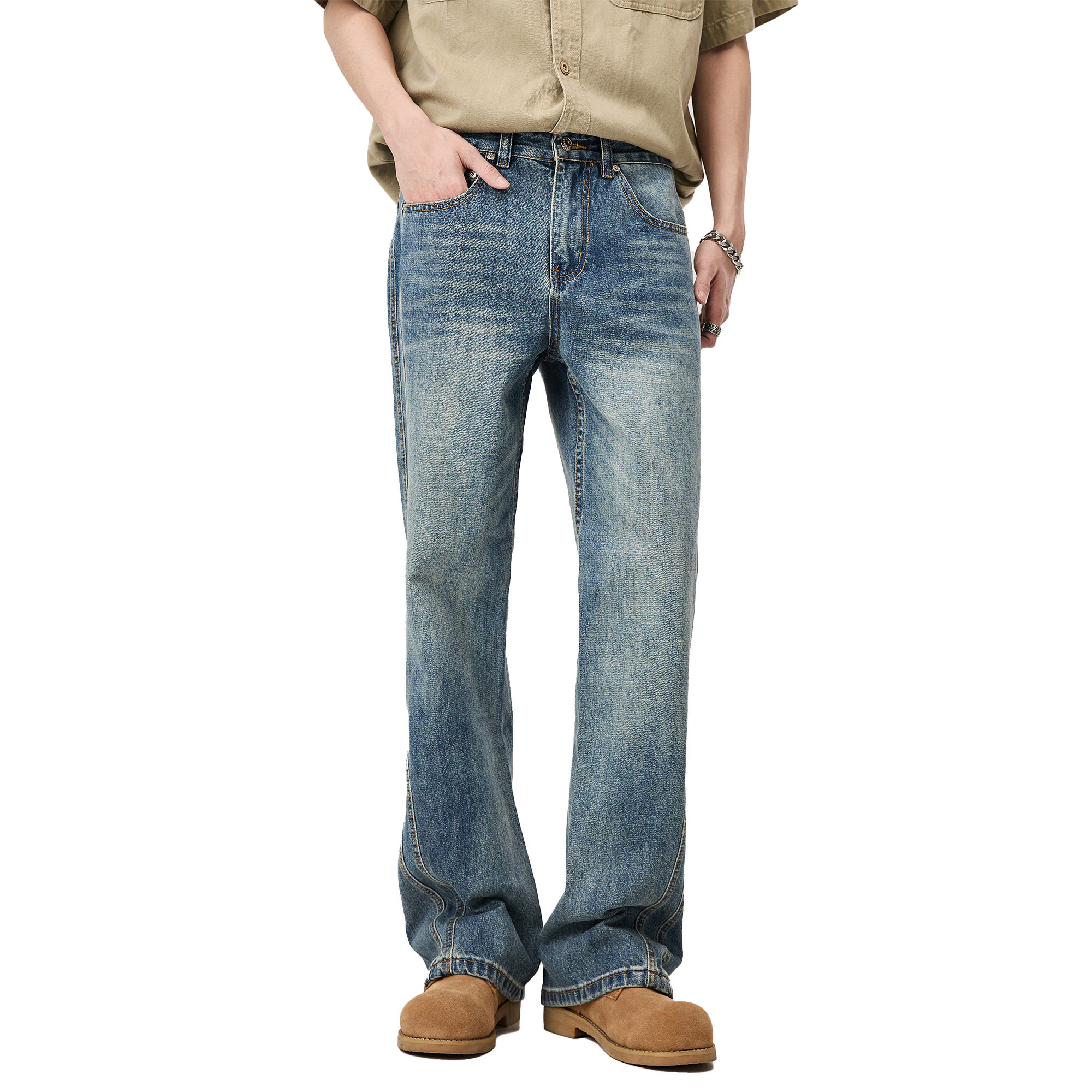 窄版 高街水洗合体直筒喇叭长裤 修身 男春秋美式 子 微喇牛仔裤 ALLIN