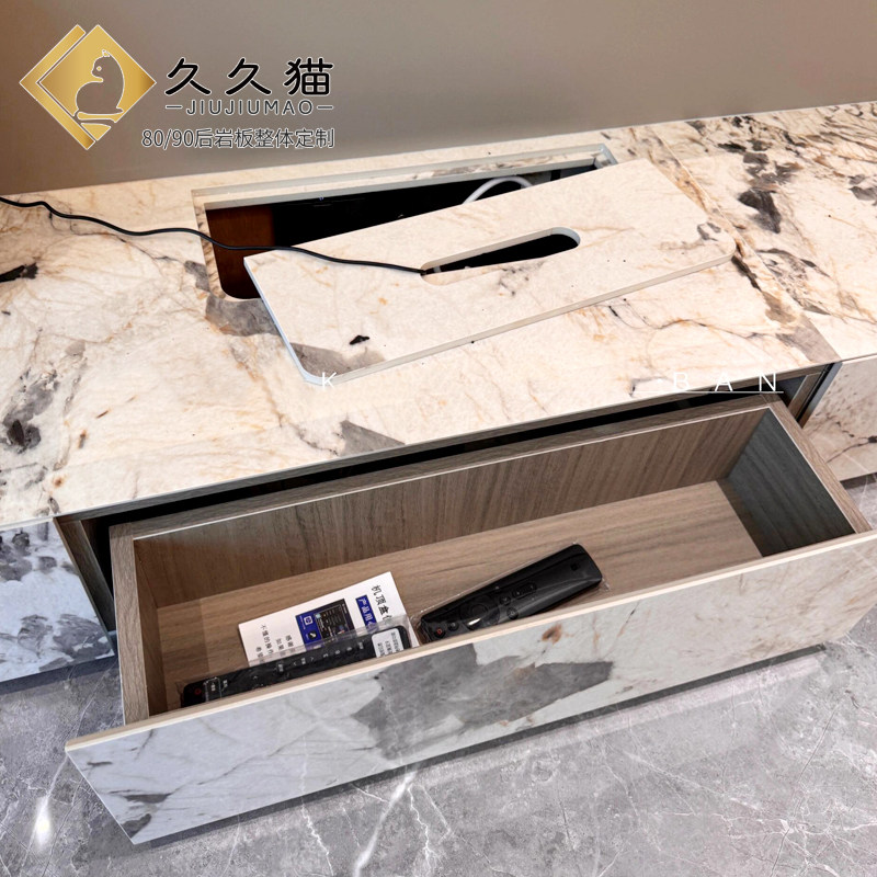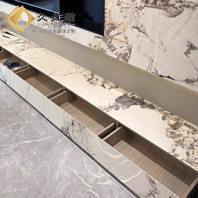 网红小红书款 岩板电视柜潘多拉地柜连纹客厅地台3.2实木家具矮柜