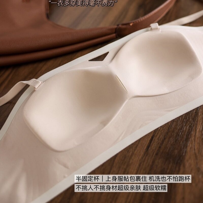 赛芬3309性感无痕半固定乳胶内衣女小胸半杯无肩带抹胸式 聚拢文胸