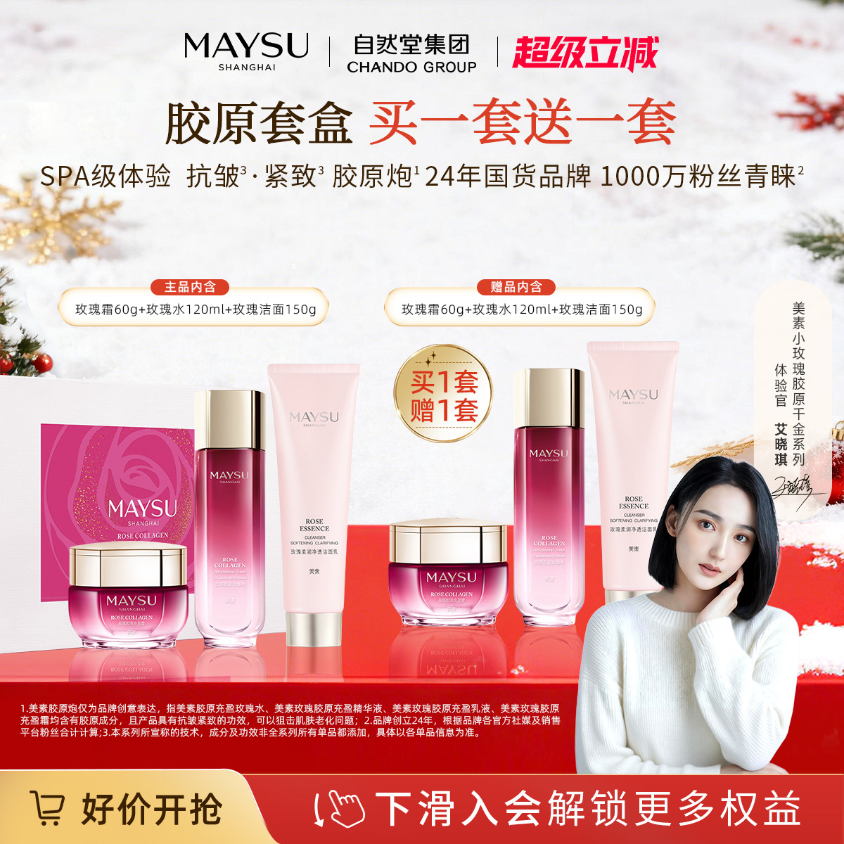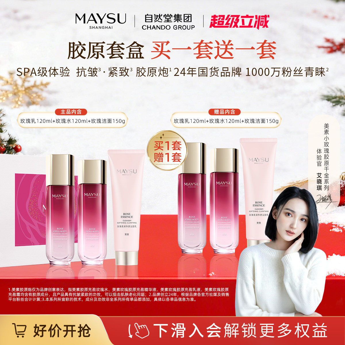 美素小玫瑰千金洁水乳套装 MAYSU 胶原提亮送礼 圣诞礼物