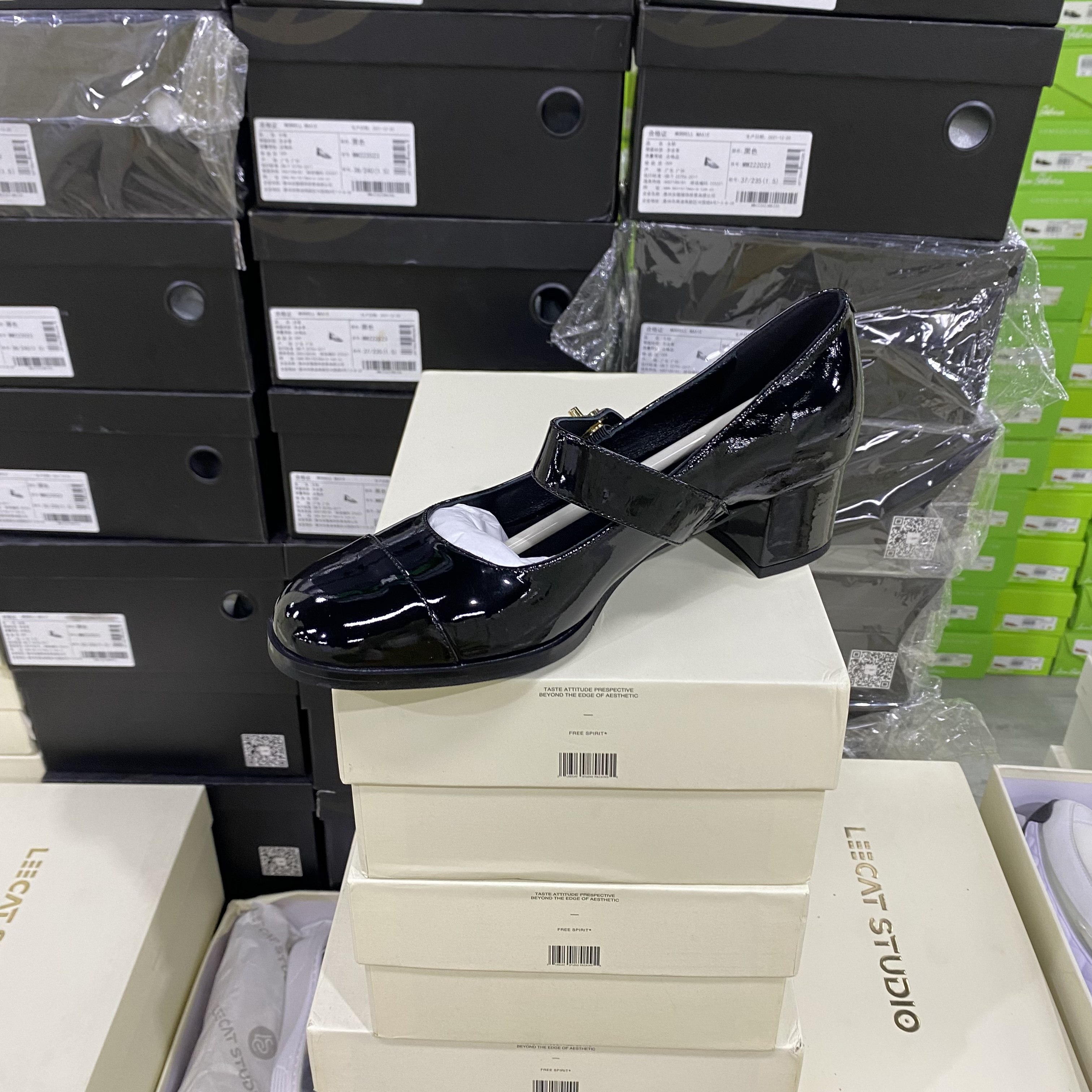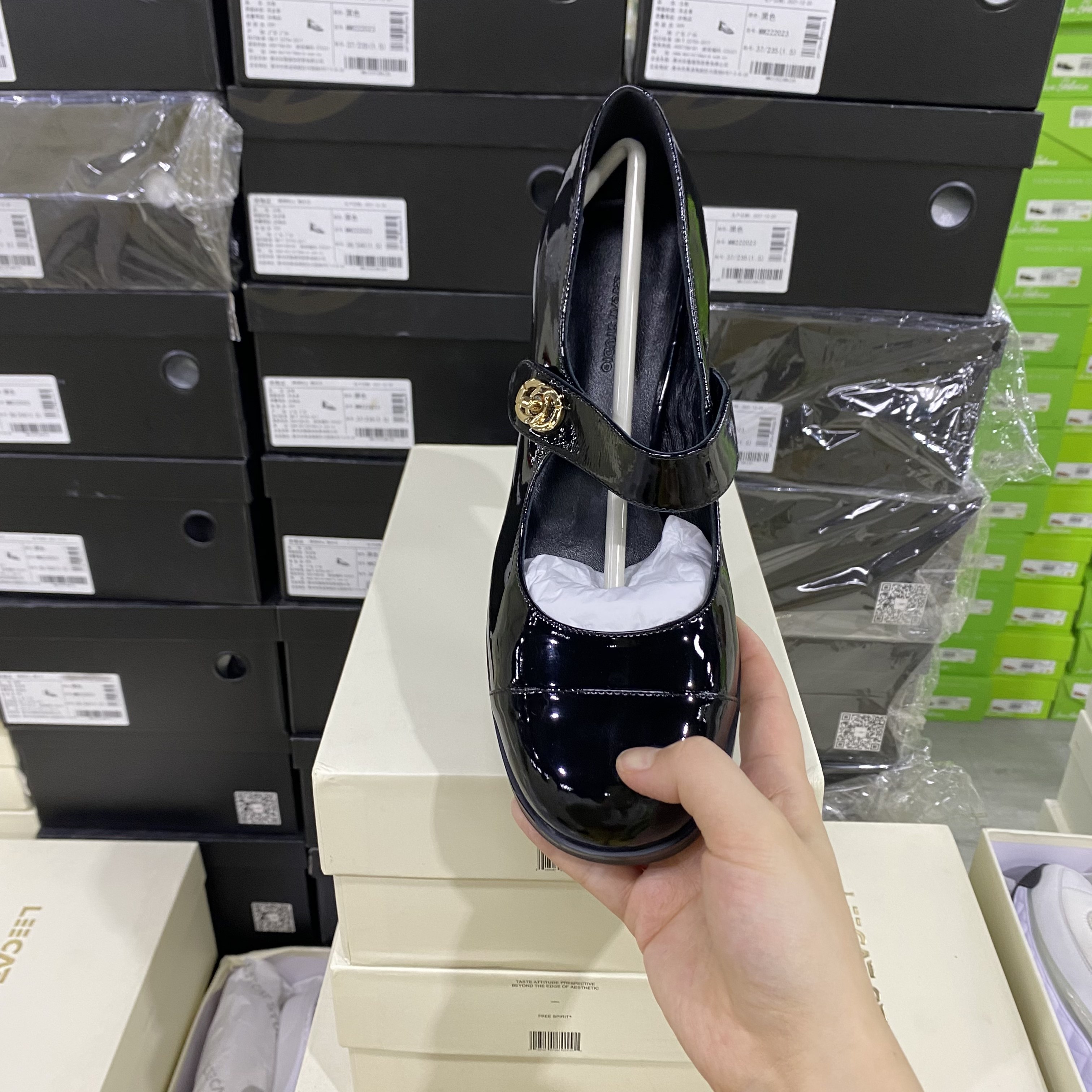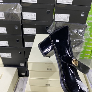 尖头气质玛丽珍鞋 山茶花一字扣粗跟单鞋 骄屿复古浅口高跟鞋 真皮
