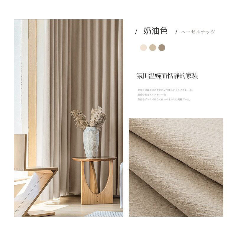 法式 奶油风窗帘轻奢现代简约卧室高级感遮光奶油色白色雪尼尔东呈