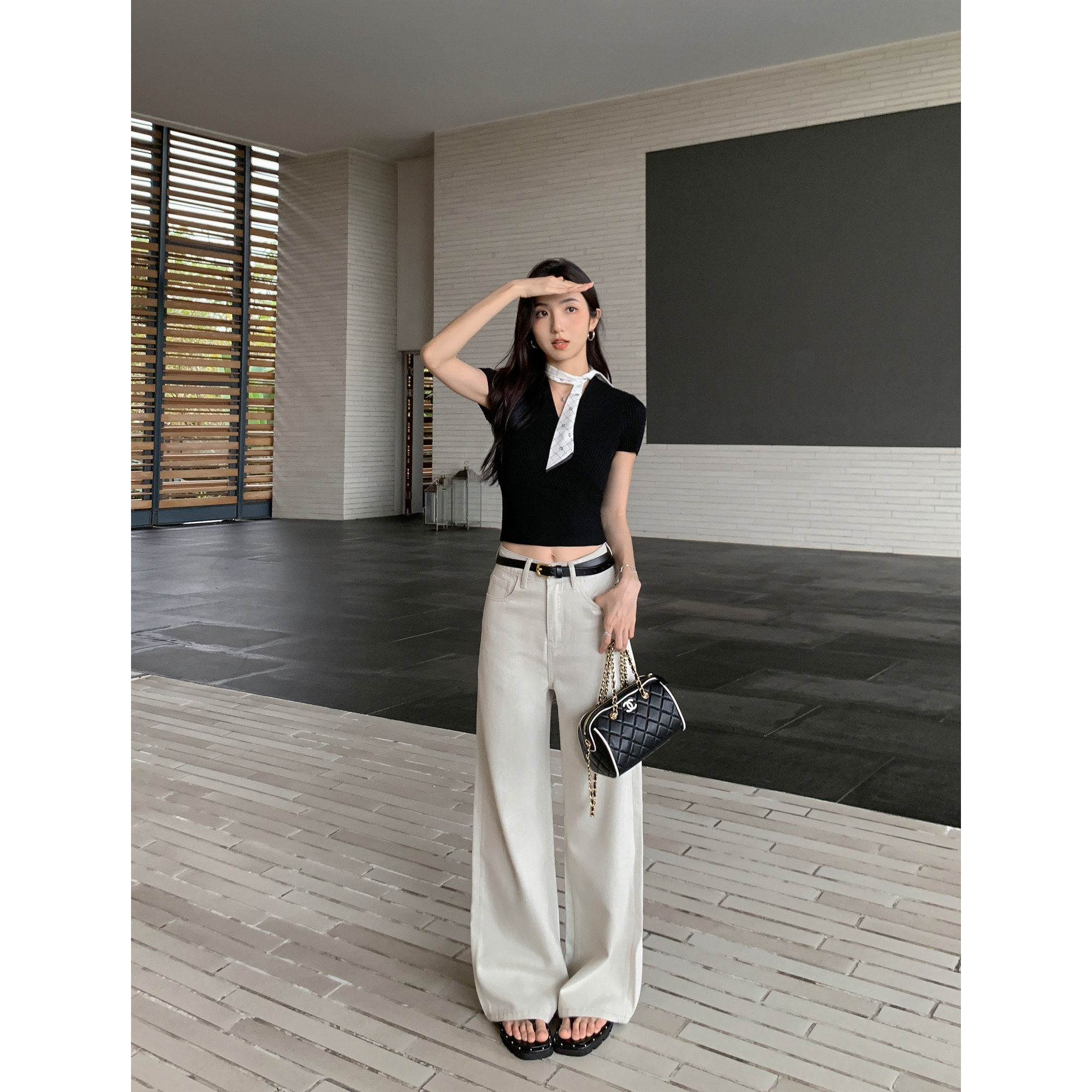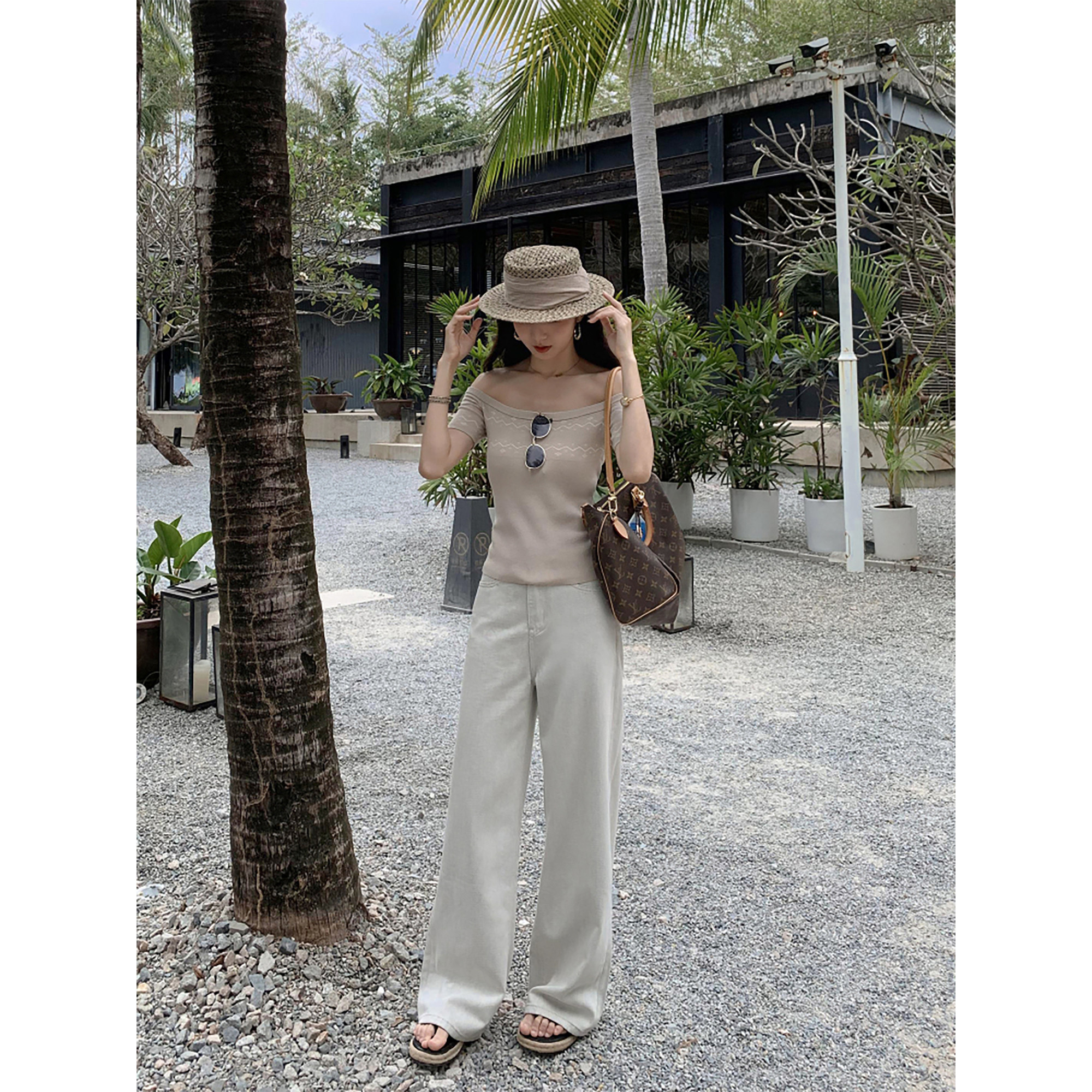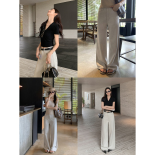 宽松显瘦休闲阔腿拖地长裤 MULVAN 女夏季 高腰直筒牛仔裤 街头丹宁