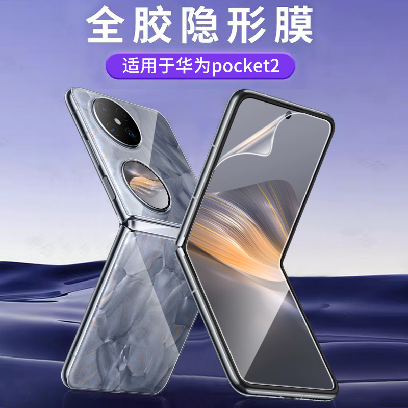 适用华为pocket2手机膜pockte2保护膜全屏覆盖新款 折叠屏防窥2代内屏铰链全包边全胶中轴后背抗摔水凝软贴膜