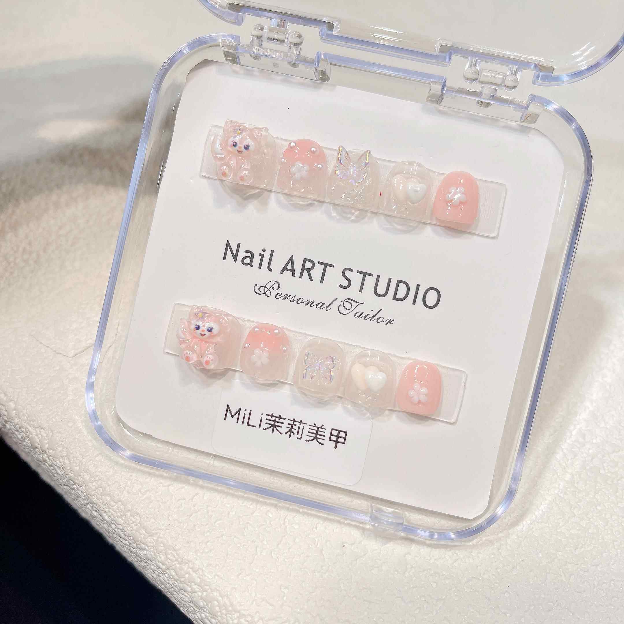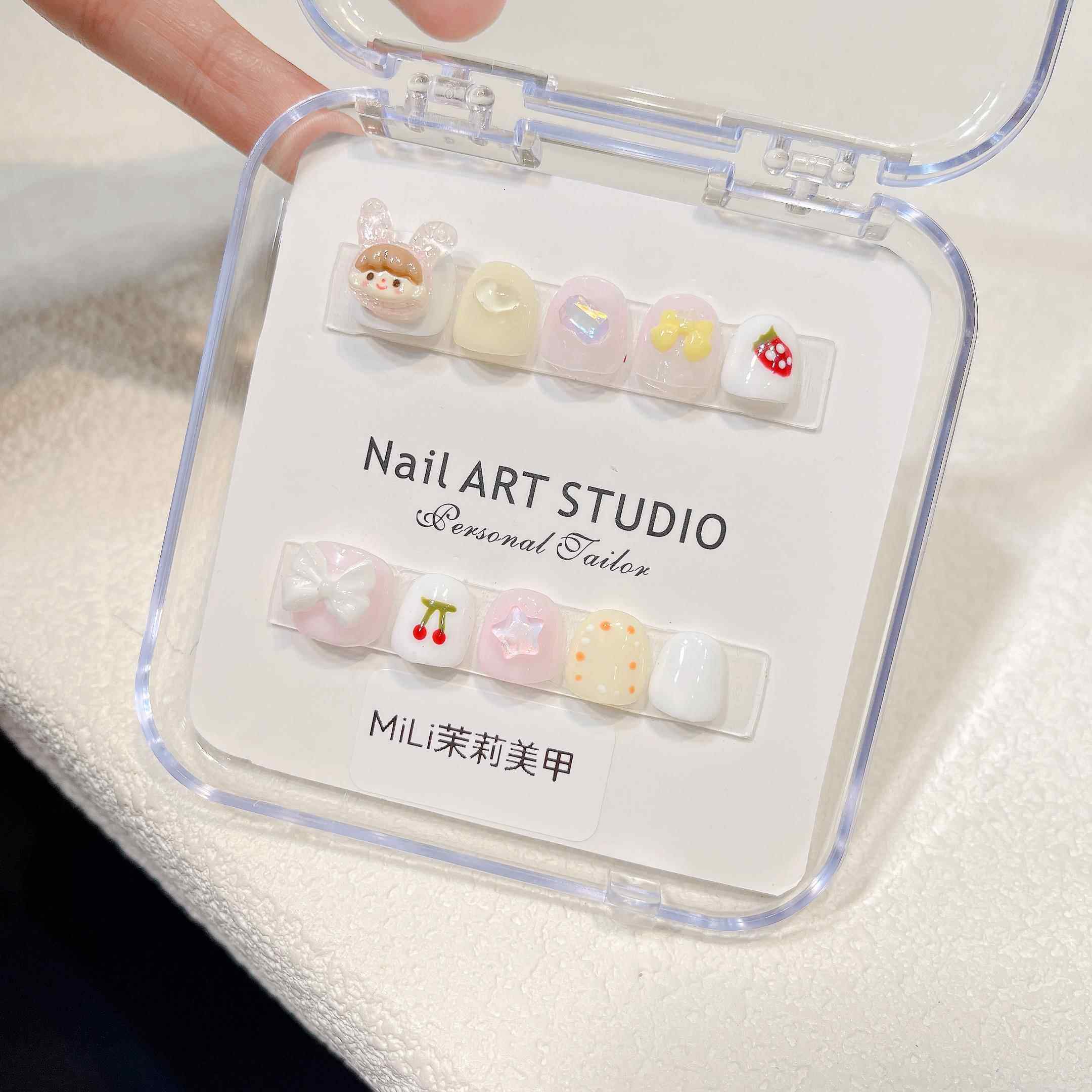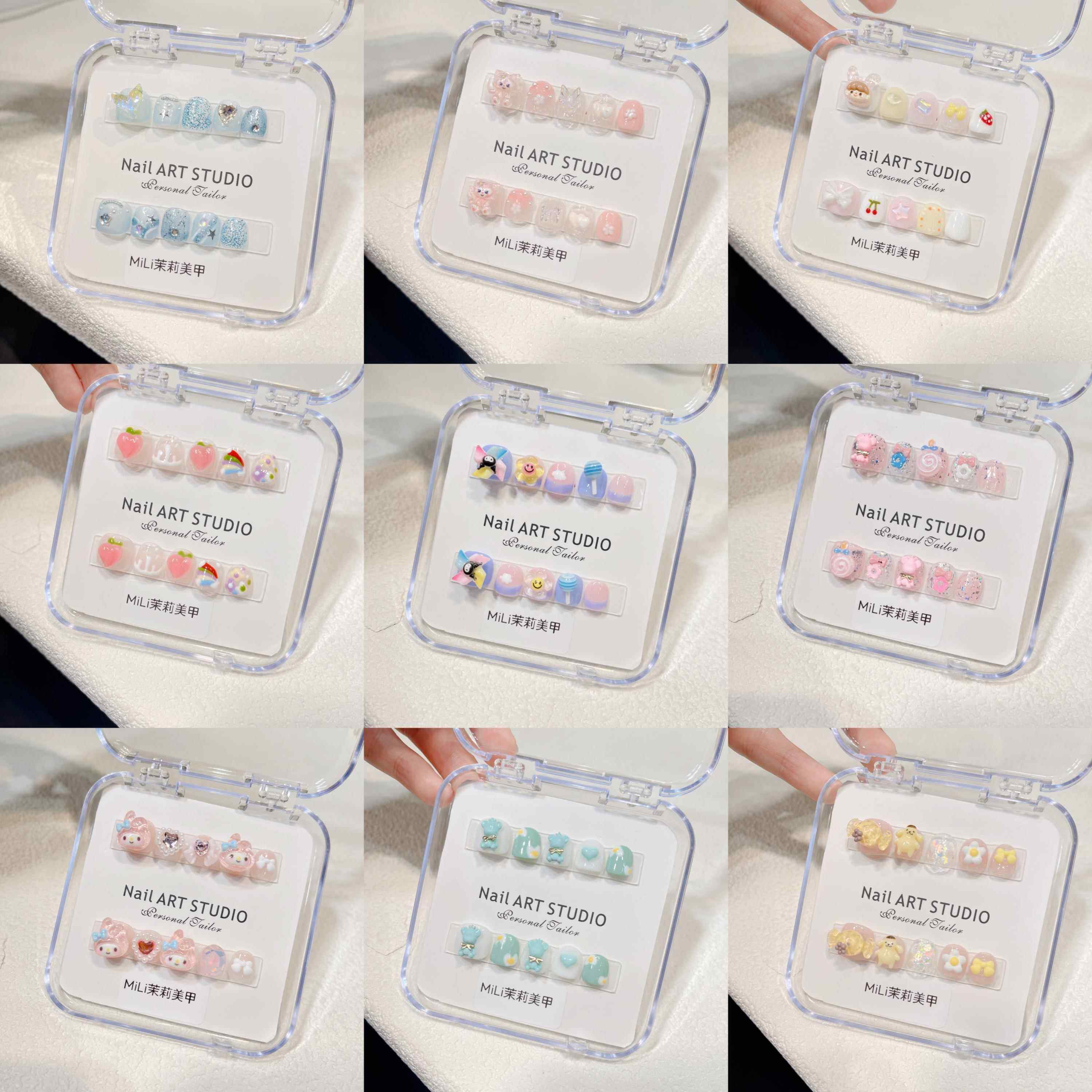 儿童穿戴甲纯手工高级感阳光彩虹立体水蜜桃短款 美甲2025新款