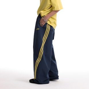 宽松休闲弯刀裤 CoosRetro 秋季 复古LOGO绣花撞色织带梭织裤 潮 美式