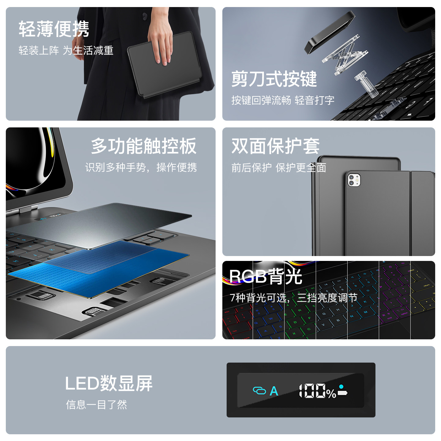 平板键盘蓝牙zpv适用苹果ipad小米华为matepad平板pro配套11专用9手机电脑外接pad静音键盘鼠标无线办公air6