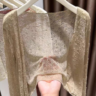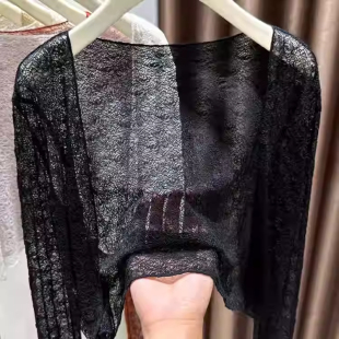 蕾丝披肩小外套配吊带裙罩衫 外搭薄款 防晒衣女夏季 安可拉红开衫