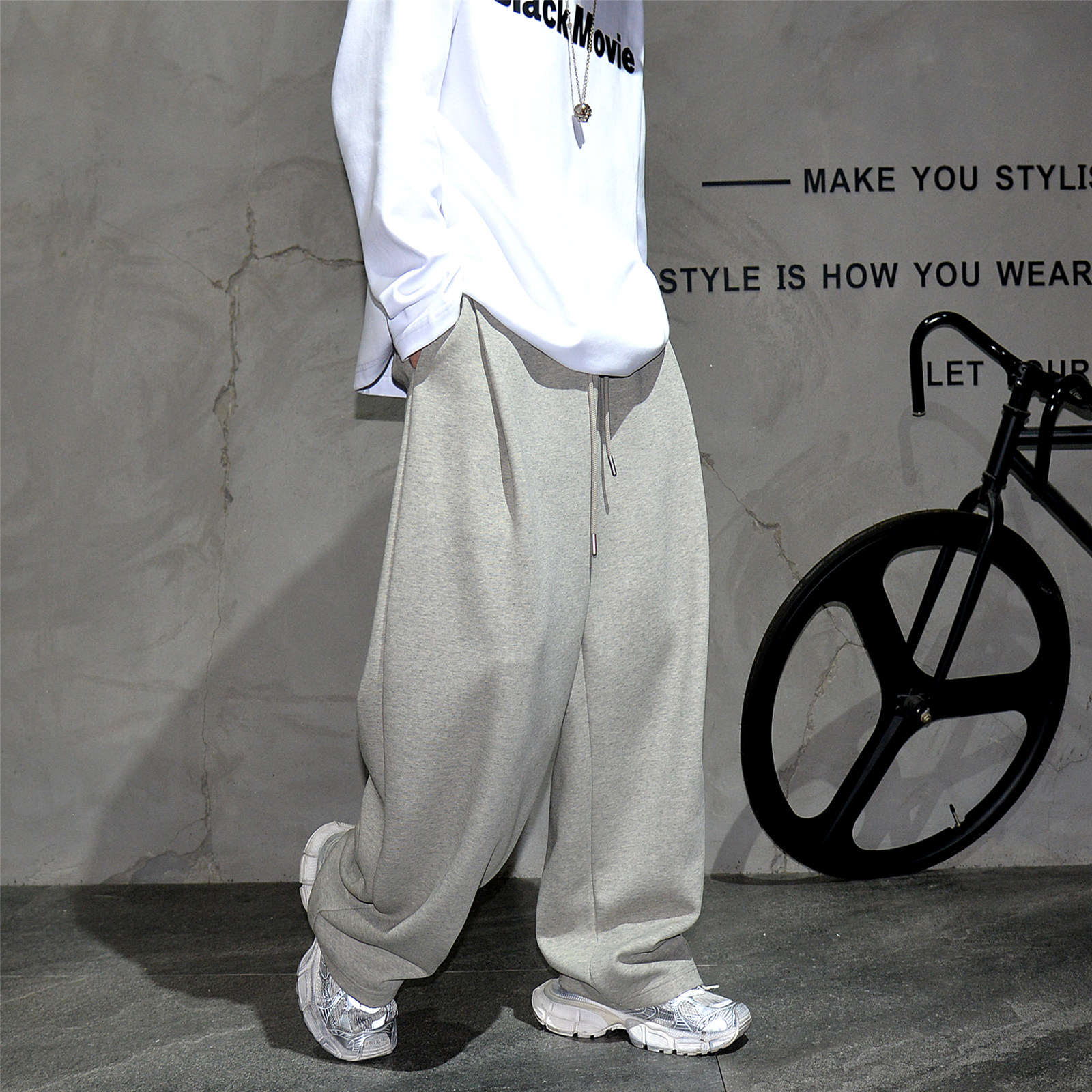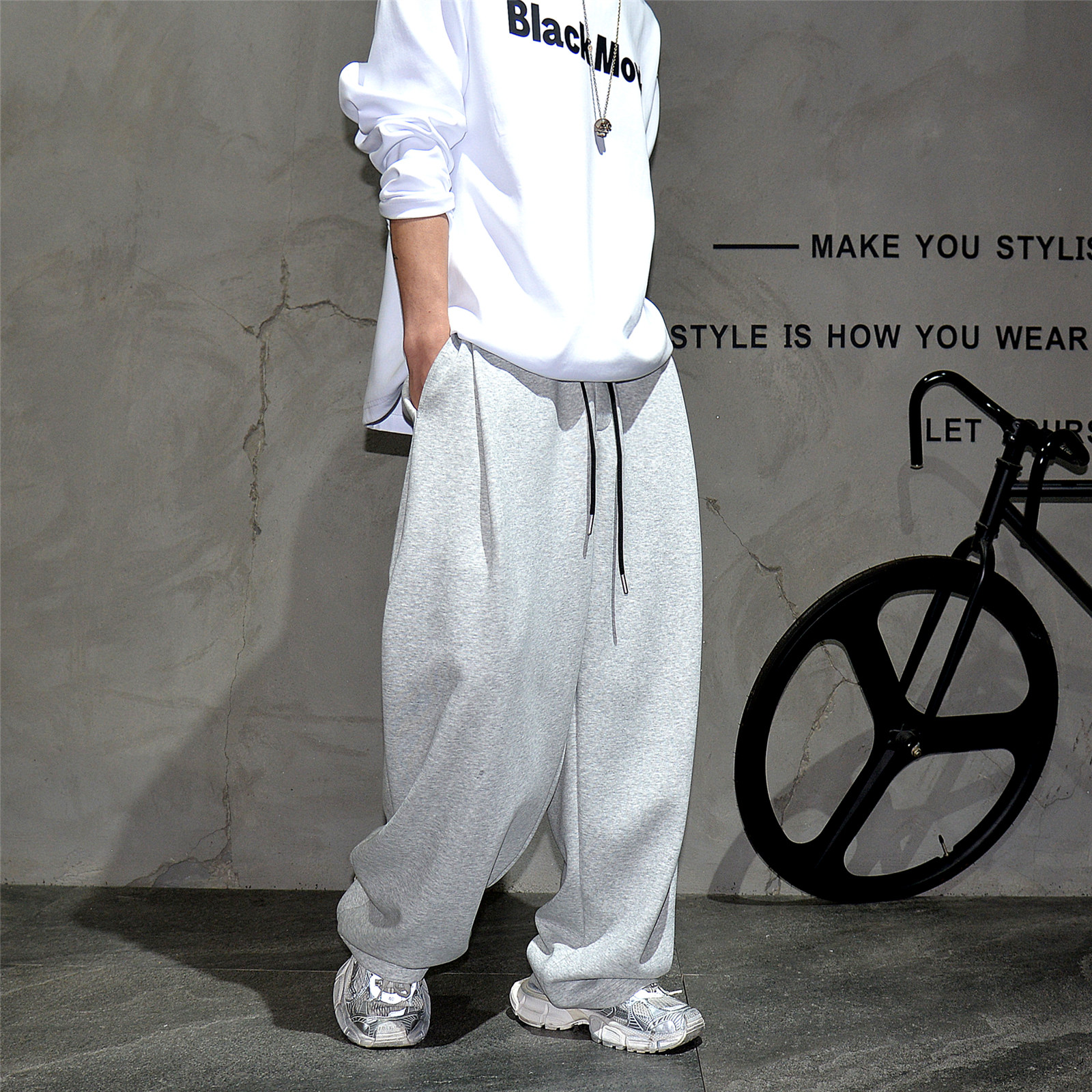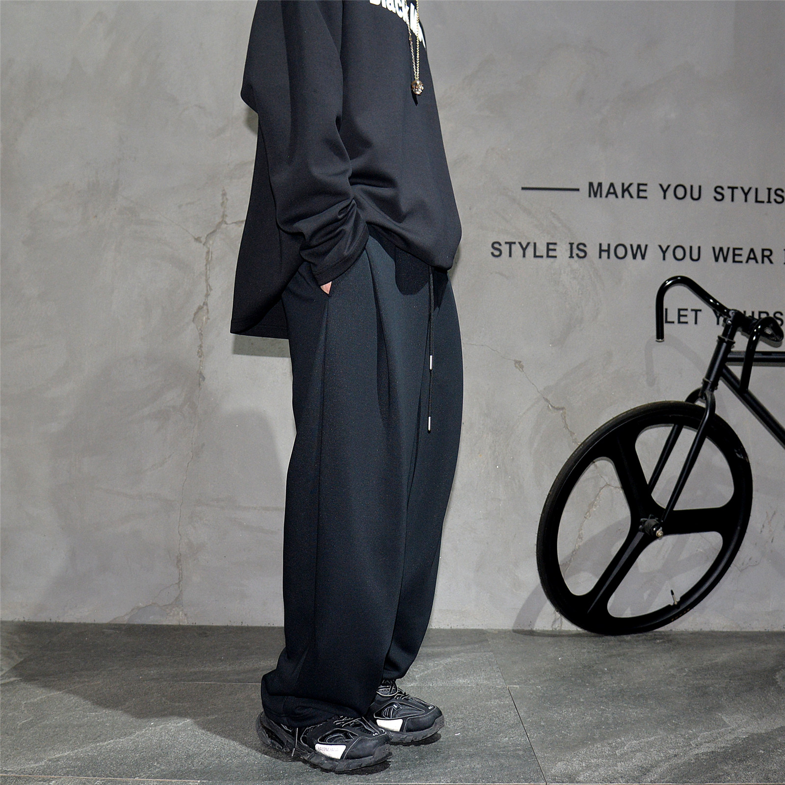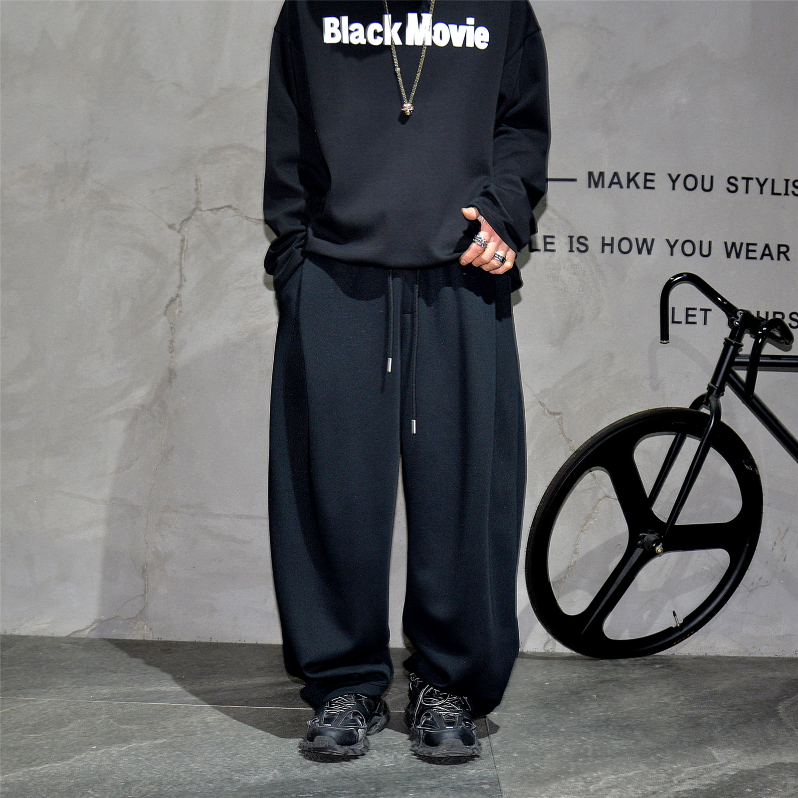子 宽松拖地长裤 高级感纯色阔腿针织卫裤 男潮牌痞帅运动休闲弯刀裤
