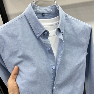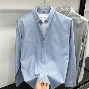 长袖 条纹上衣服美式 衬衫 新款 休闲衬衣外套 高端2025年春季 磨毛男士