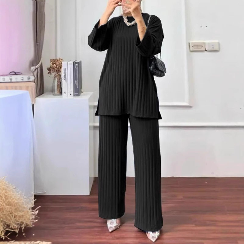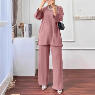 衬衫 长袖 宽腿裤 服装 迪拜运动服外套 跨境女装 女士休闲套装 搭配秋季
