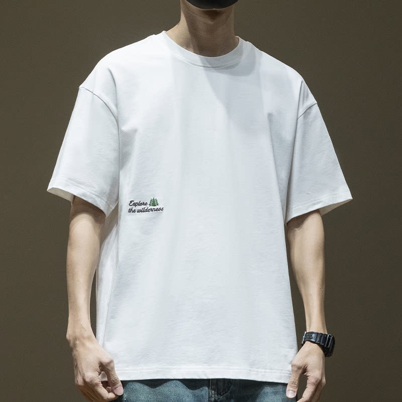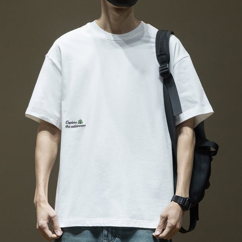白T恤男刺绣2026夏季 男生半袖 新款 凉感宽松大码 男士 纯棉重磅短袖