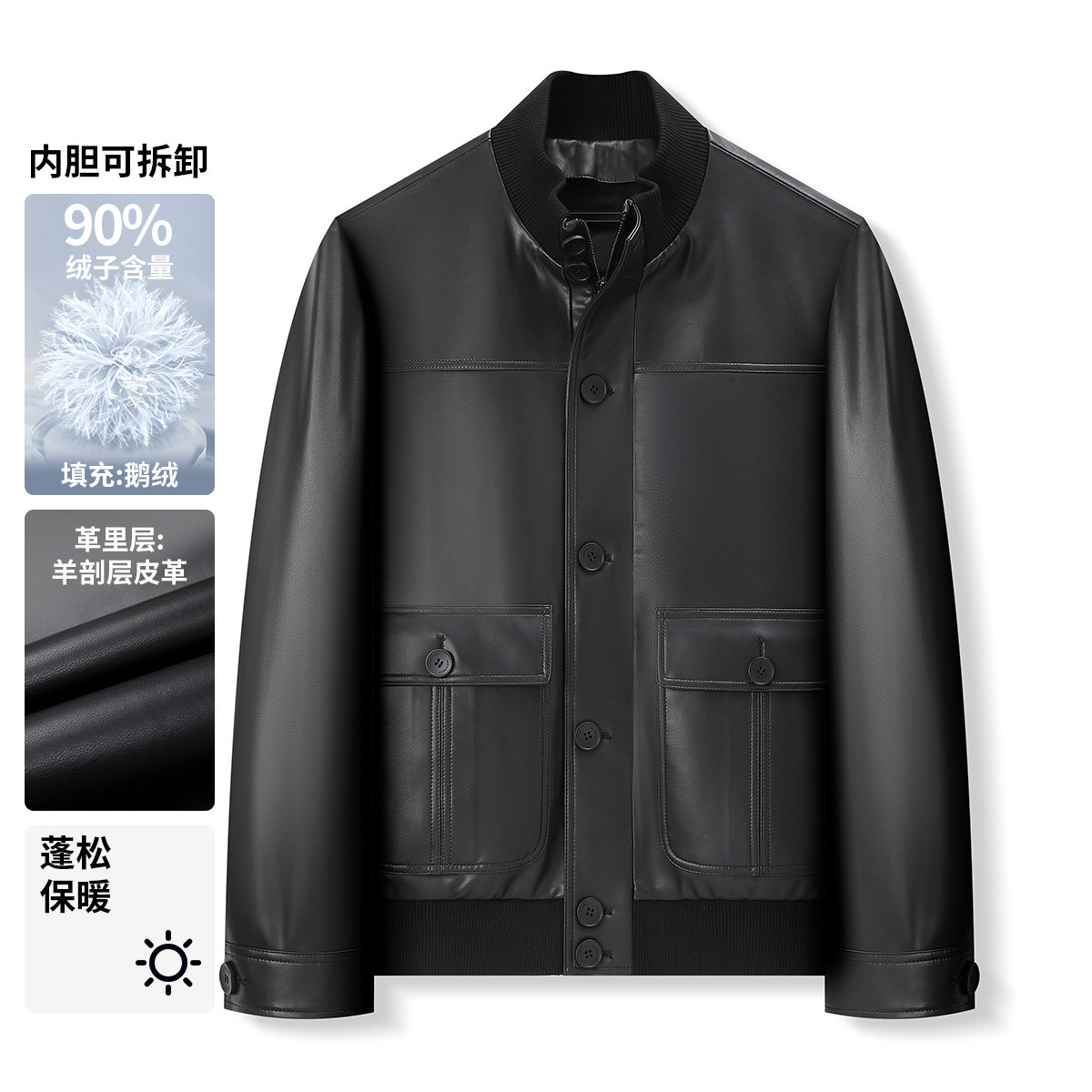 仿真皮皮衣24秋冬一衣两穿立领保暖皮夹克外套 浪登男士 鹅绒内胆