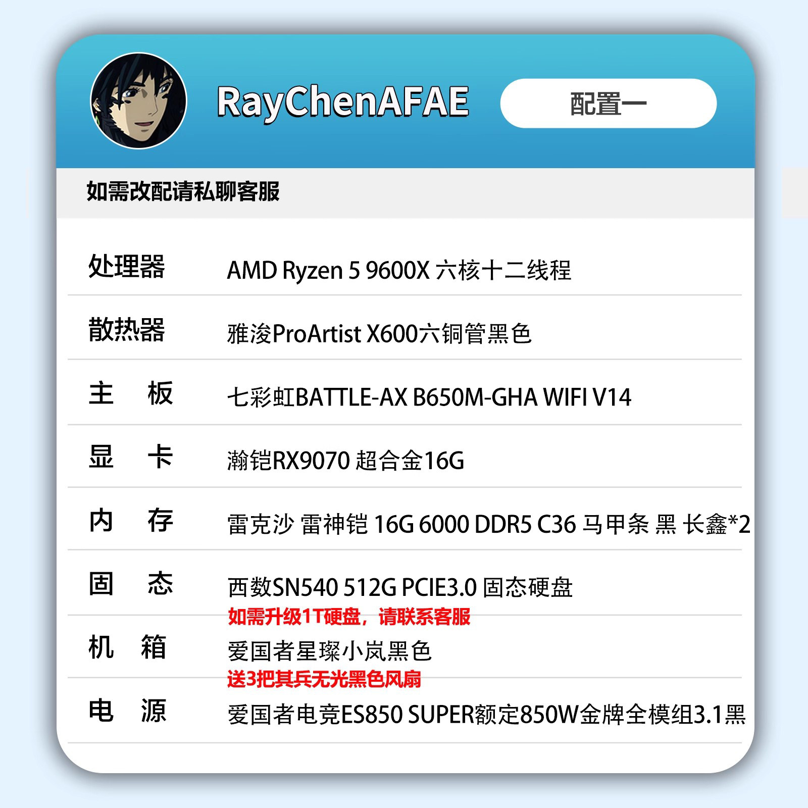 店铺掌柜:  RayChenAFAE装机店