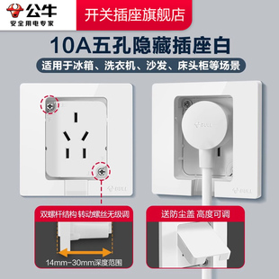 公牛插座隐藏插座嵌入式 插座冰箱五孔86型面板 隐形插座内凹内嵌式