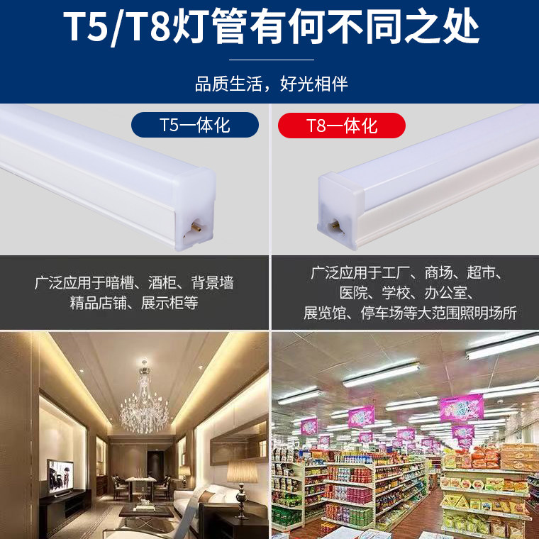 led灯管t5一体化长条灯全套支架条形灯家用节能t8日光灯1.2米灯条