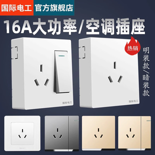 国际电一开三孔16a空调插座面板带开关家用明装 大功率热水器专用
