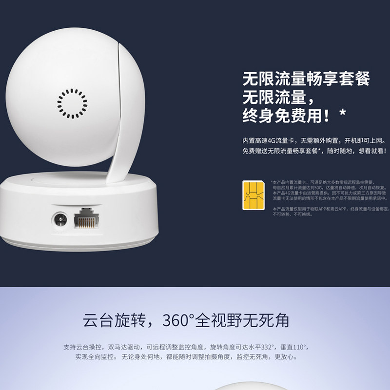 F4GE IPC43AN 300万4G免流量不需要充值云台摄像机摄影头室内监控 LINK