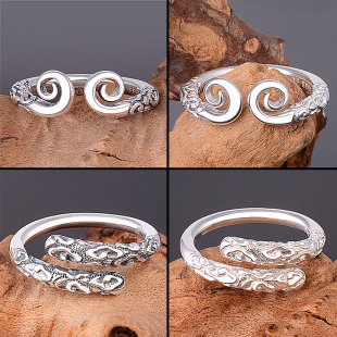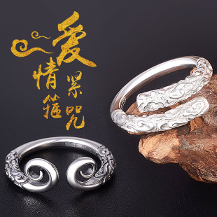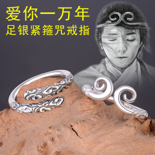 990足银紧箍咒戒指男士 刻字 女情侣对戒复古泰银孙悟空金箍棒个性