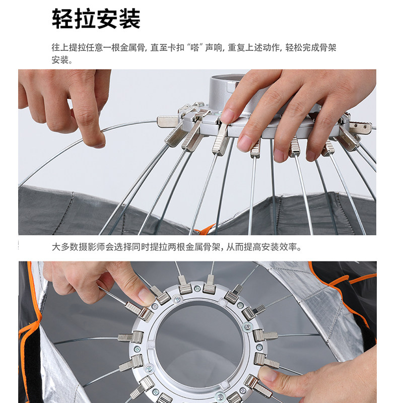 便携式 深抛柔光箱通用保荣口网格摄影灯罩视频拍摄深口抛物线格栅柔光罩影棚附件直播补光灯柔光器具 金属快装