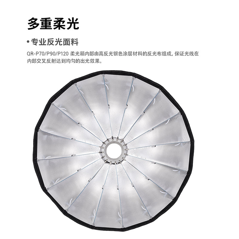 P70 保荣卡口网格格栅柔光罩 原装 直播补光灯柔光器具 型深口抛物线柔光罩 神牛QR 快装 120CM深抛柔光箱