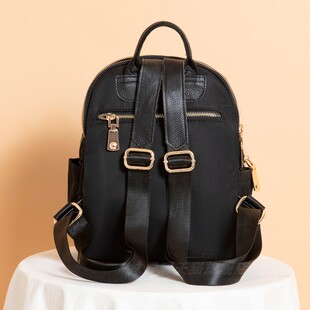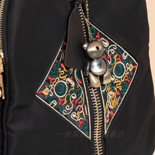 复古风刺绣双肩包女三层牛津布配皮防盗背包黑色简约拉链女式 包袋
