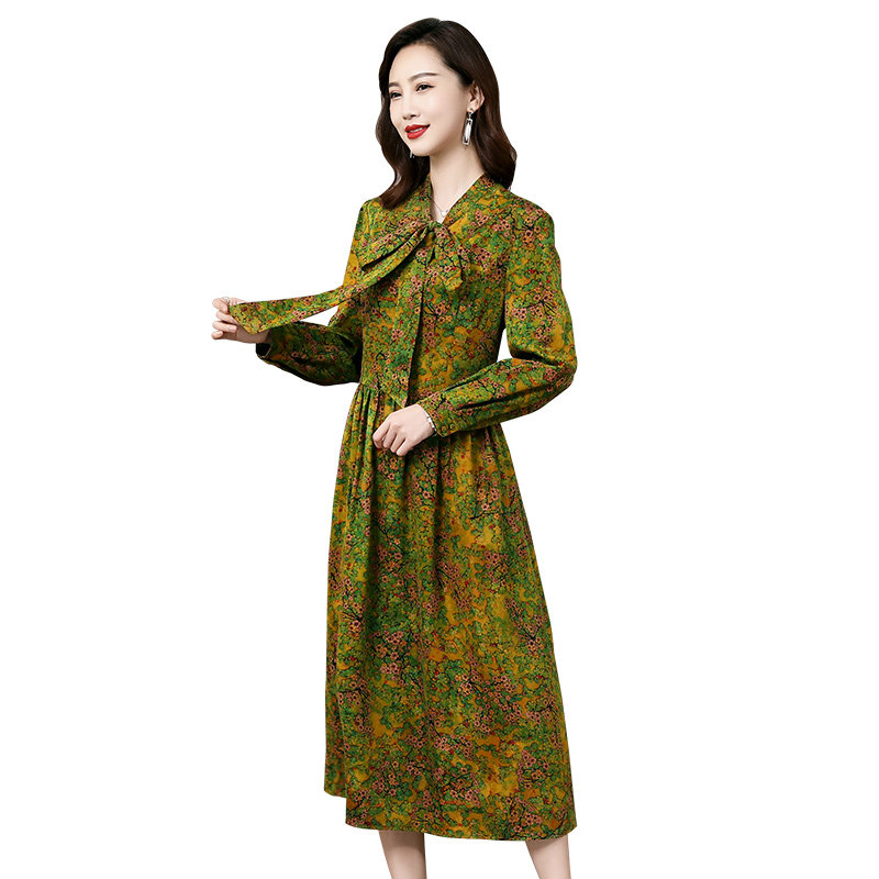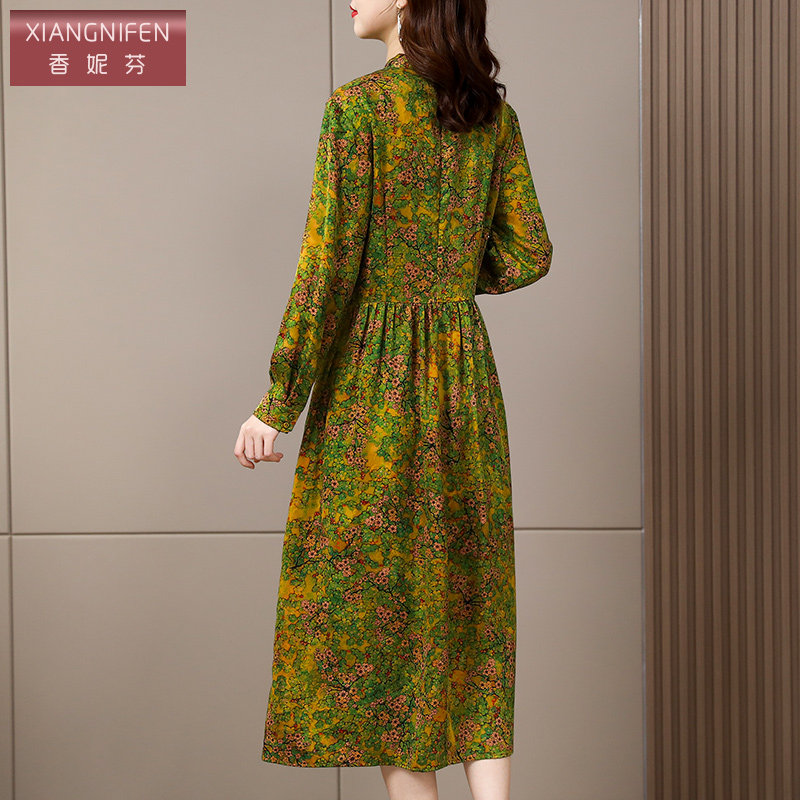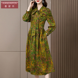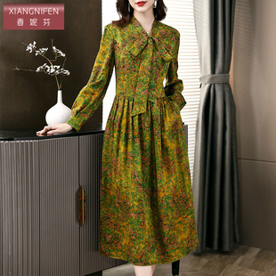 桑蚕丝裙子 中长款 香妮芬碎花杭州香云纱真丝连衣裙女2026新款 春季