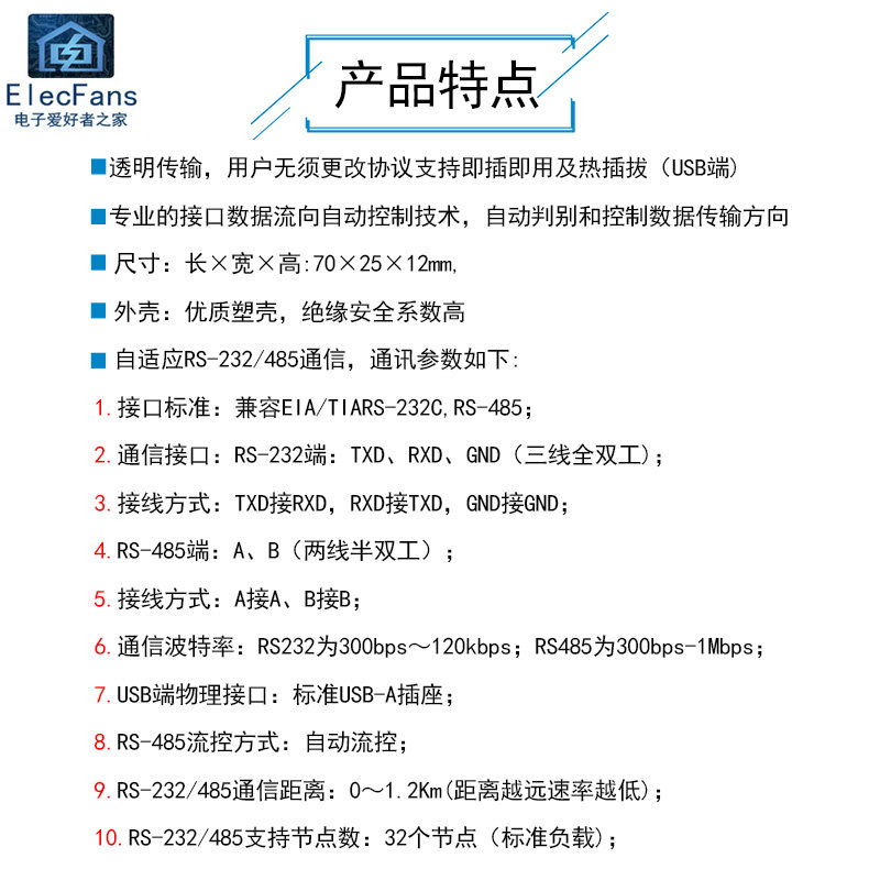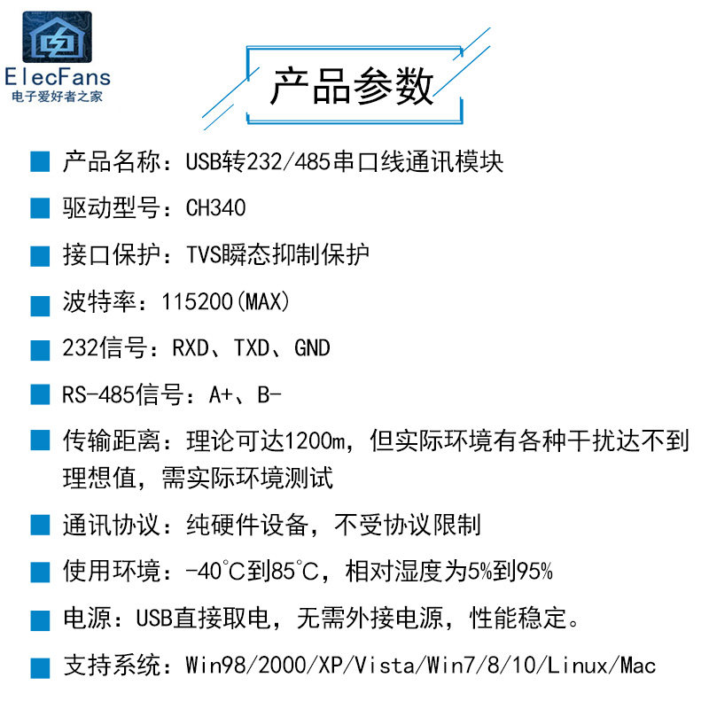 USB转RS232 扩展板转换器ch340转接头 RS485串口线通讯传输模块