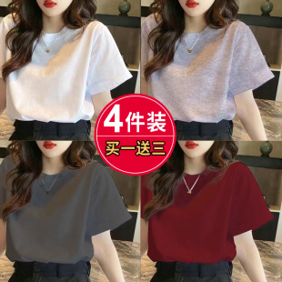 t恤女短袖 打底衫 夏季 宽松薄款 圆领纯色9.9显瘦上衣 2024新款 正品