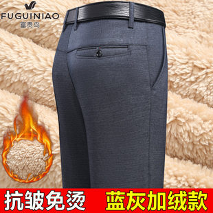 子羊羔绒男裤 富贵鸟冬季 休闲长裤 男直筒免烫中年男士 加绒加厚西裤
