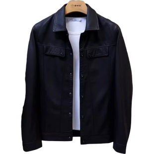 百搭皮夹克男欧货商务休闲黑色皮衣翻领时尚 新款 外套 男士 5516春季