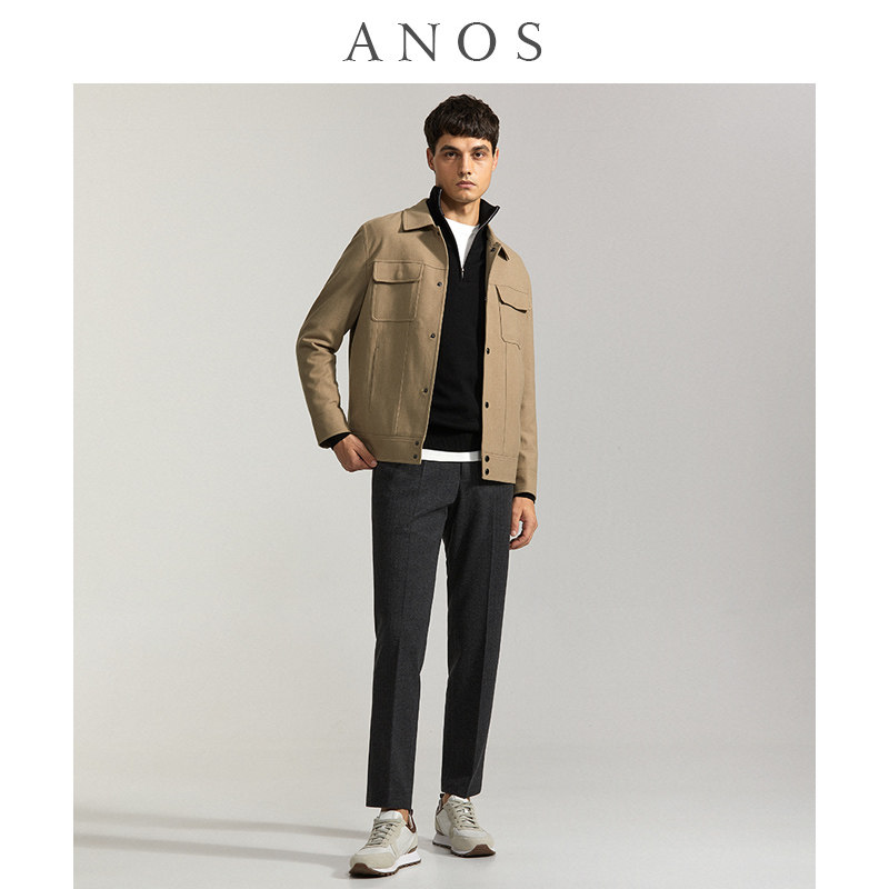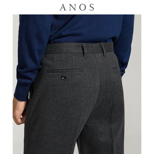 男 毛呢休闲西裤 深灰色人字纹商务修身 厚款 子 ANOS冬季 保暖裤 时尚
